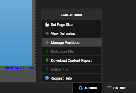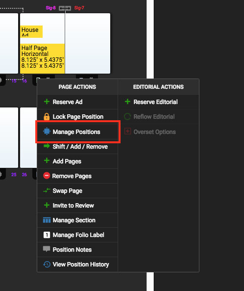 To Manage Positions, navigate to the page you would like to manage and select “Manage Positions” from the Slot Item menu under the page.