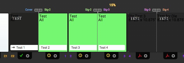 Once a plan has been promoted to production, you will notice the status of pages is now shown beneath the page on the book plan. This will alert book planners as to what needs to be done at a quick glance. By hovering over the icon, users can see the different statuses of individual pages.