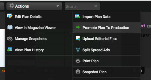 To promote the plan to production, select the Actions menu from the top of the book plan and select Promote Plan to Production. This will open a popup that will contain any warnings about to book plan before continuing the promotion of the plan.